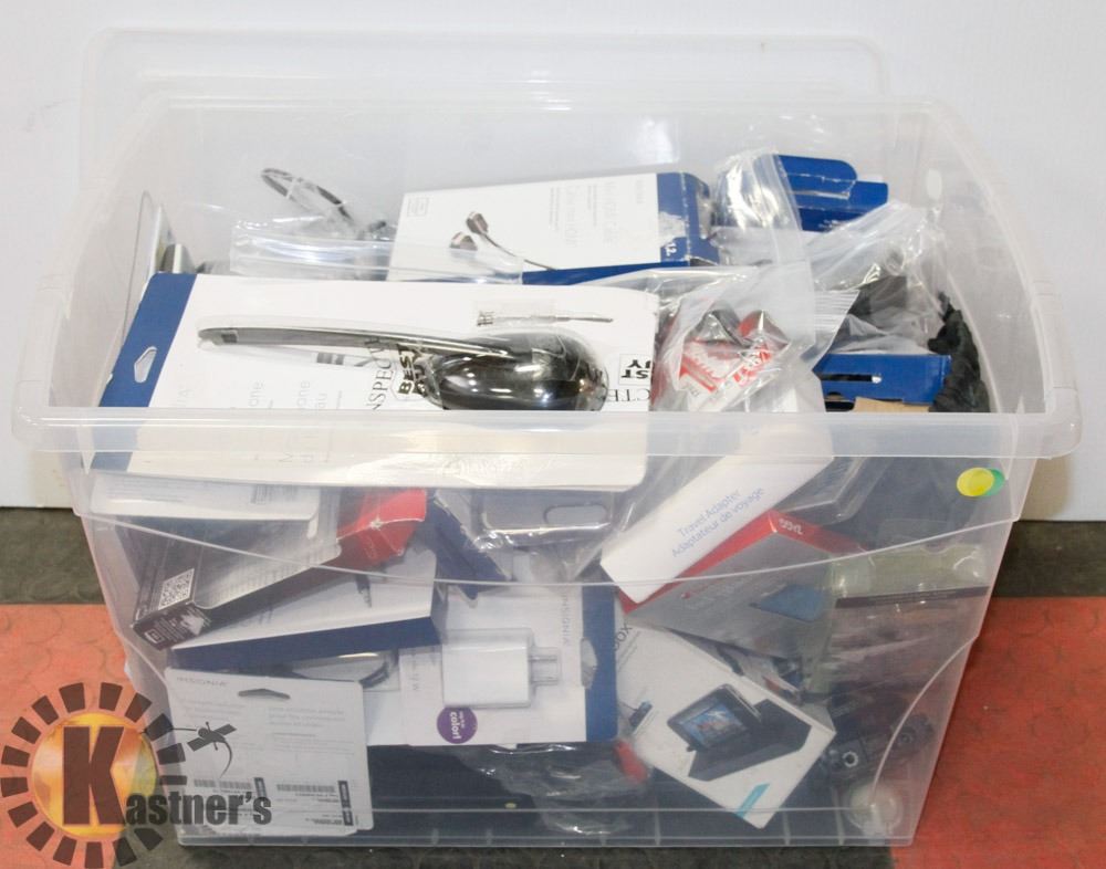 PLASTIC BIN OF COMPUTER/ELECTRONIC ACCESSORIES