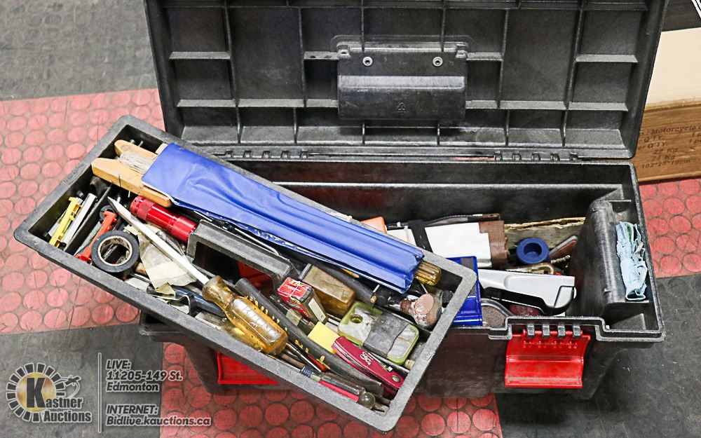 PLASTIC TOOLBOX WITH PLUMBERS TOOLS