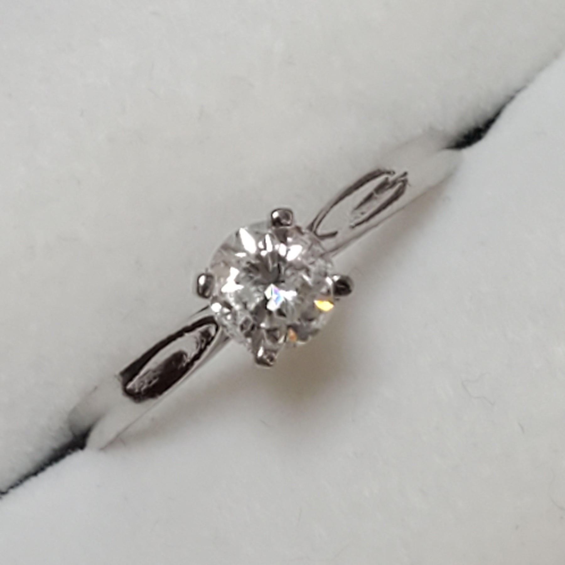 PLATINUM DIAMOND SOLITAIRE RING.SIZE 6 THE BRIGHT POLISHED MOUNT WITH ELEVATED AND TAPERING SHOULDERS CENTERS A FOUR PRONG ROUND BRILLIANT CUT DIAMOND MEASURING. 4.57 - 4.58 X 2.70 MM.CLARITY GRADE 1-2. COLOUR GRADE G. CUT GRADE GOOD. CARAT WEIGHT 0.34 CARAT. TOTAL WEIGHT 2.50 GRAMS. COMES WITH CERTIFICATE OF APPRAISAL FROM LOCAL APPRAISER, SUGGESTED INSURANCE COVERAGE $1800.00. JEWELLERY