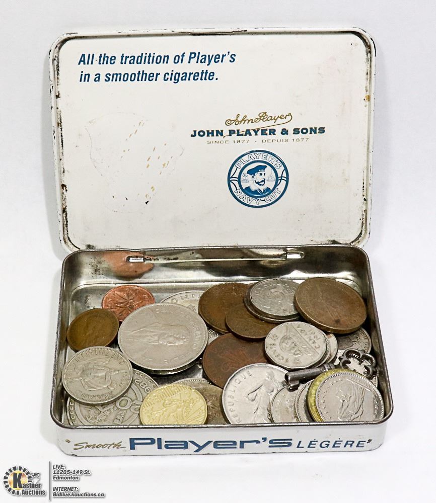 PLAYERS CIGARETTE TIN WITH ASSORTED COINS