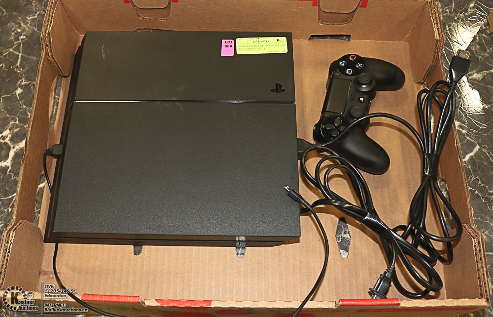 PLAYSTATION 4 WITH CONTROLLER AND CHARGE CABLE
