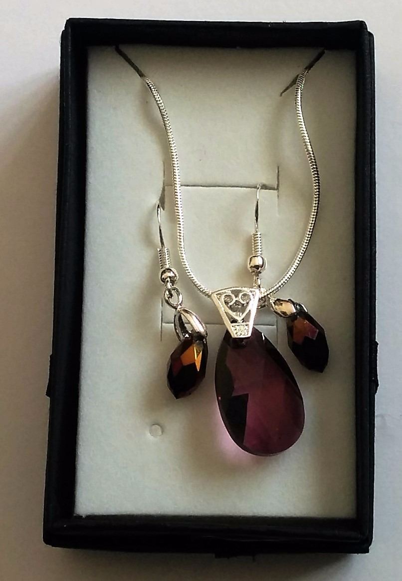 INCLUDES EARRINGS & OVAL SHAPED PENDANT & CHAIN STAMPED 925