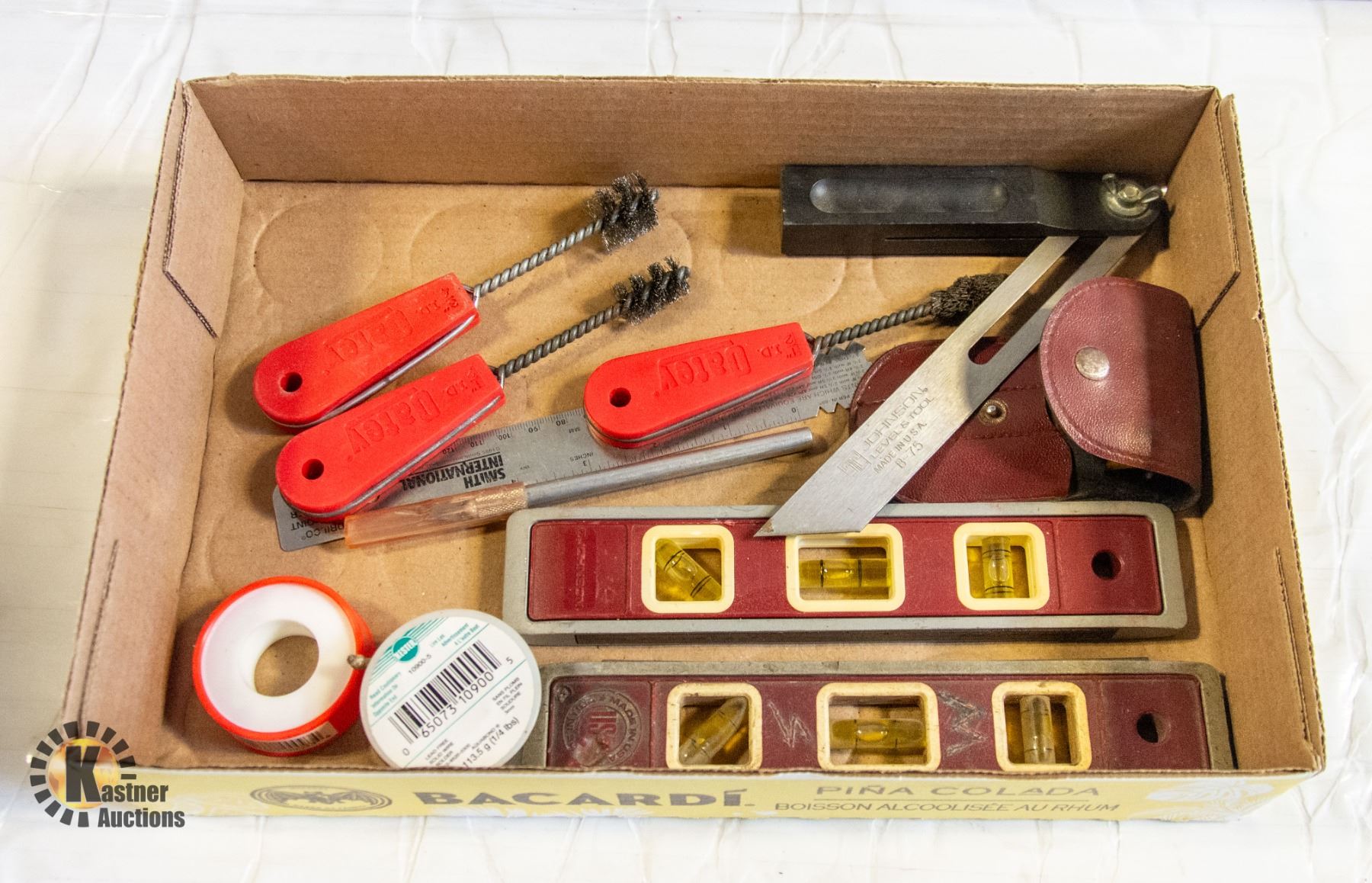 PLUMBERS TOOLS OATEY , LEVELS , PIPE TAPE ,