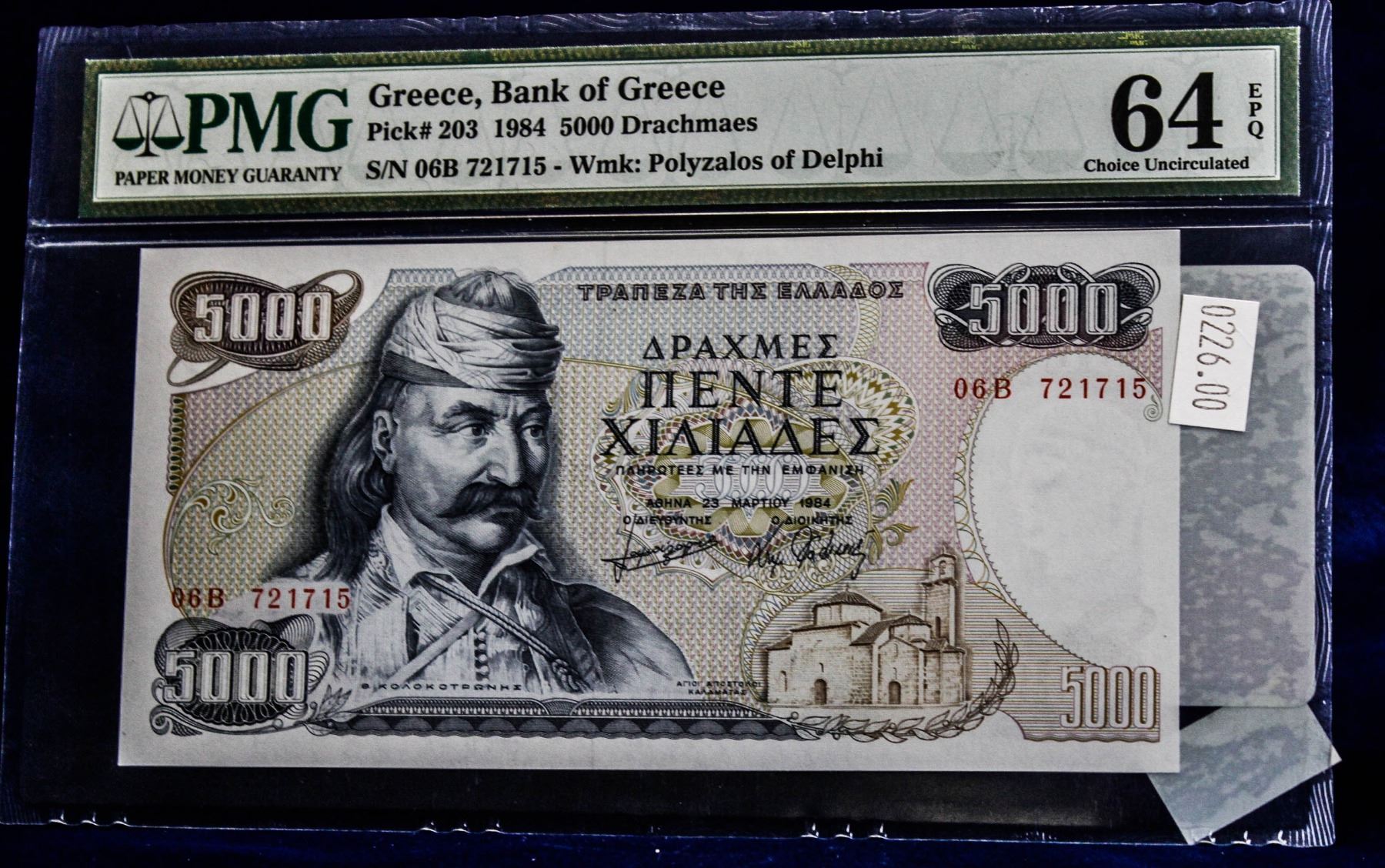 PMG CH UNC64 EPQ GREECE 5000 DRACHMA NOTE