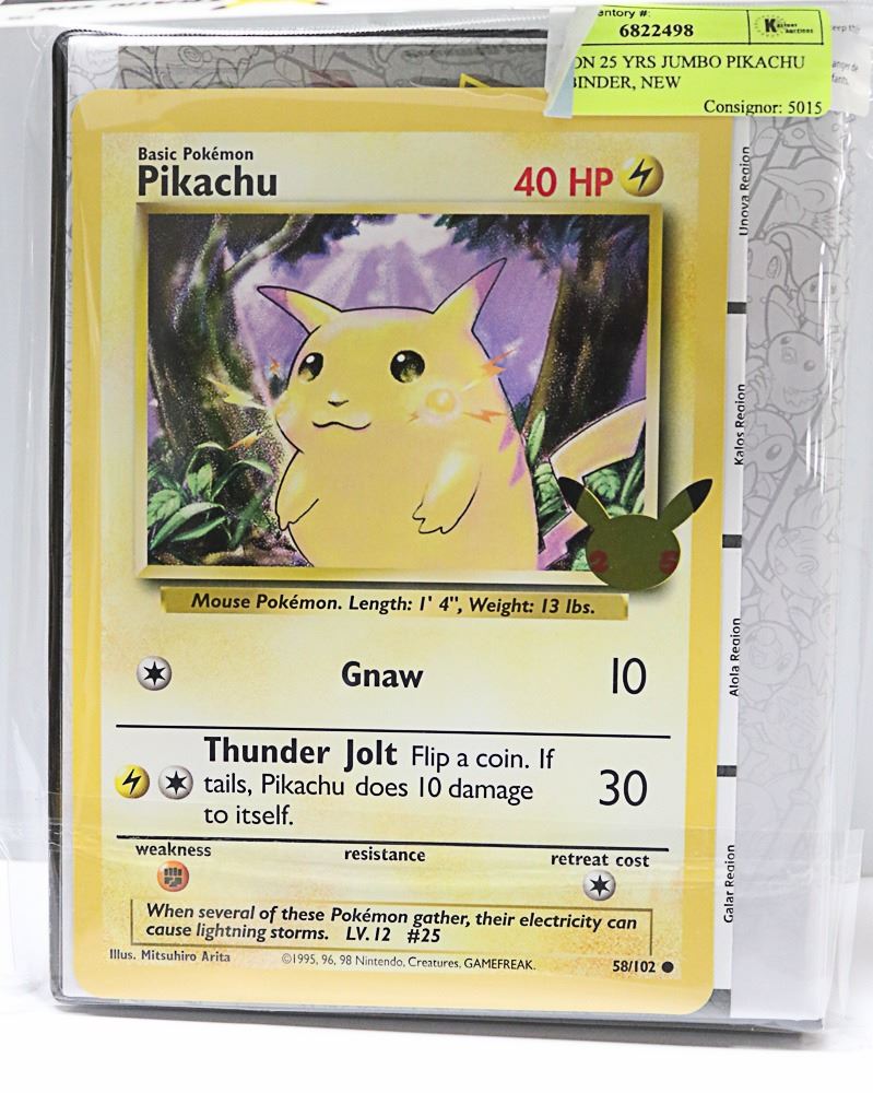 POKEMON 25 YRS JUMBO PIKACHU CARD, BINDER, NEW