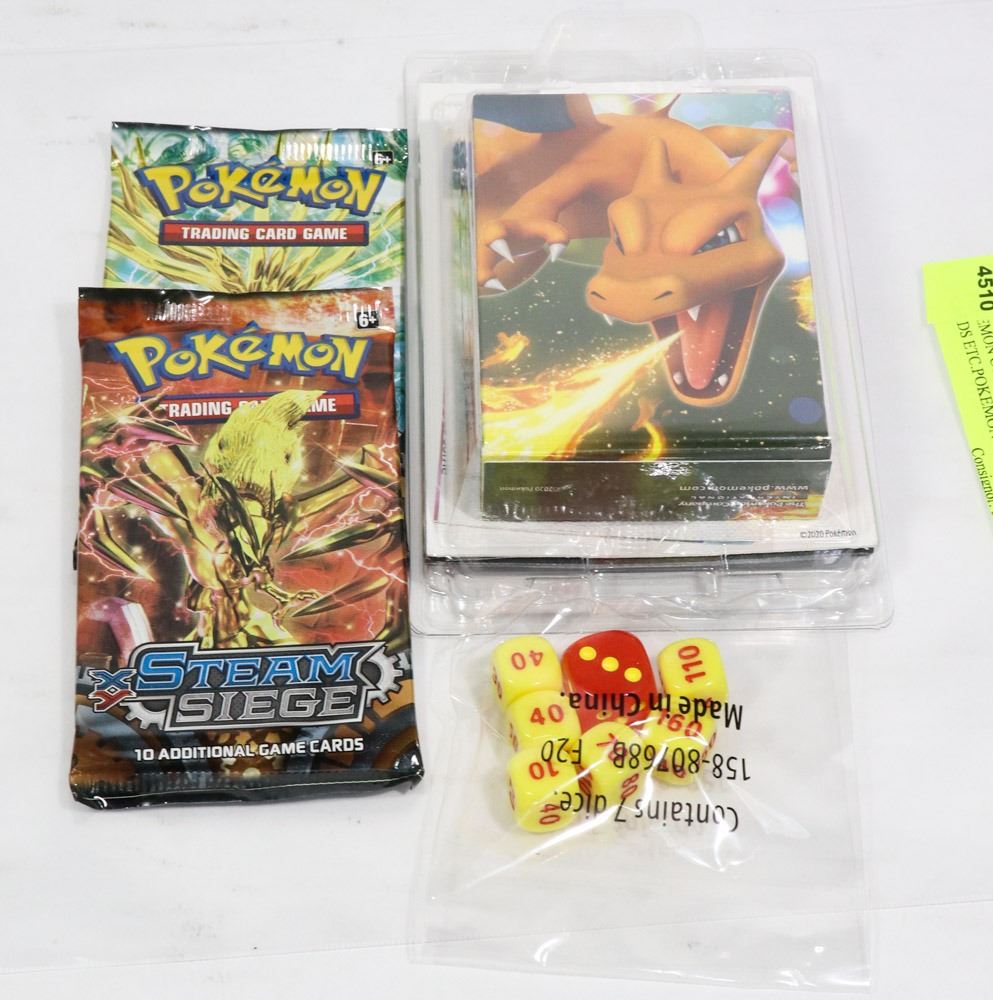POKEMON COLLECTIBLE LOT NEW CARDS ETC.POKEMON COLLECTIBLE LOT OF NEW SEALED BOOSTER PACKS, CHARIZARD THEME DECK OF CARDS, ETC. - COLLECTIBLE