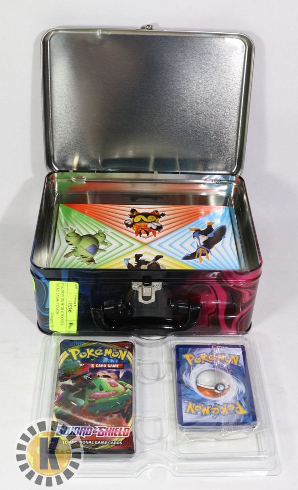 POKEMON TIN WITH x2 BOOSTER PACKS, ENERGY CARDS
