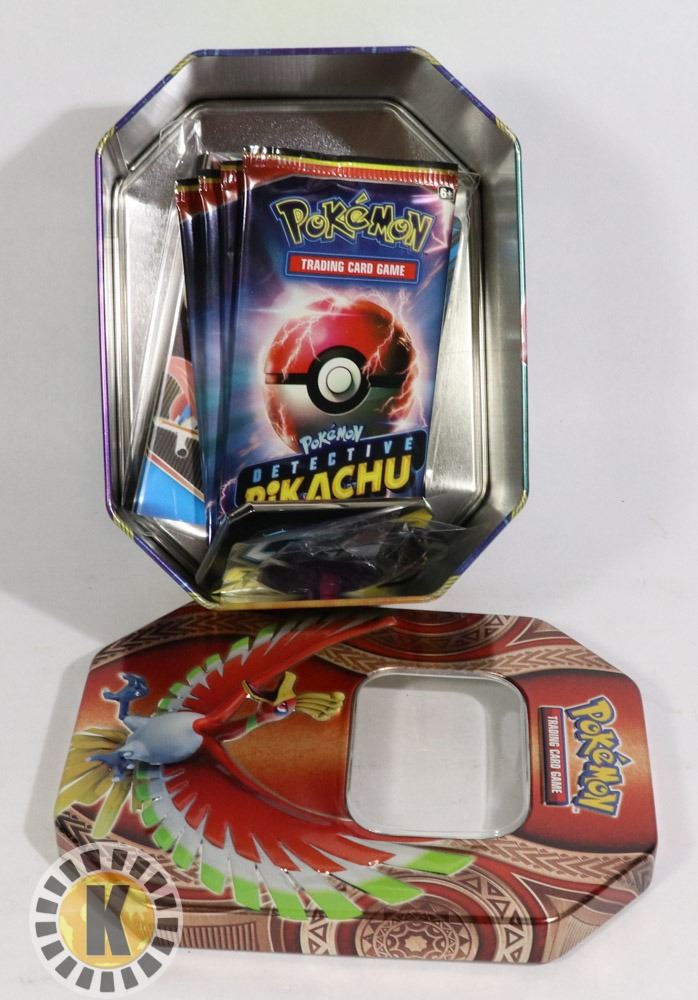 POKEMON x4 BOOSTERS, MINI BINDER ETC. TIN