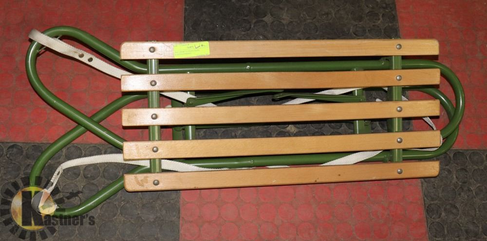 FOLD-AWAY EASY STORAGE, STRONG METAL TUBE FRAME WITH WOOD SLAT TOP AND HEAVY DUTY NYLON STRAP TOW ROPE - GENERAL, SEASONAL