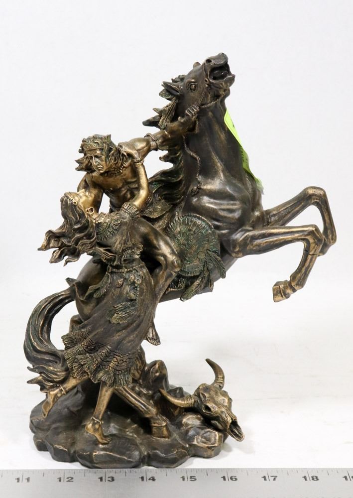 POLYCAST STATUE OF HORSE WITH MAN & WOMAN.