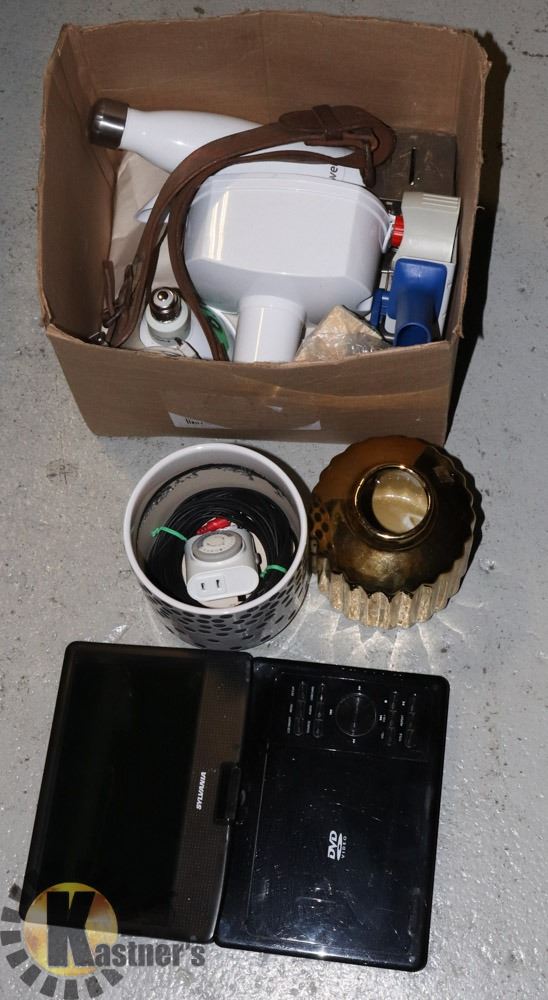PORTABLE DVD PLAYER AND ASSORTED HOME ESTATE ITEMS