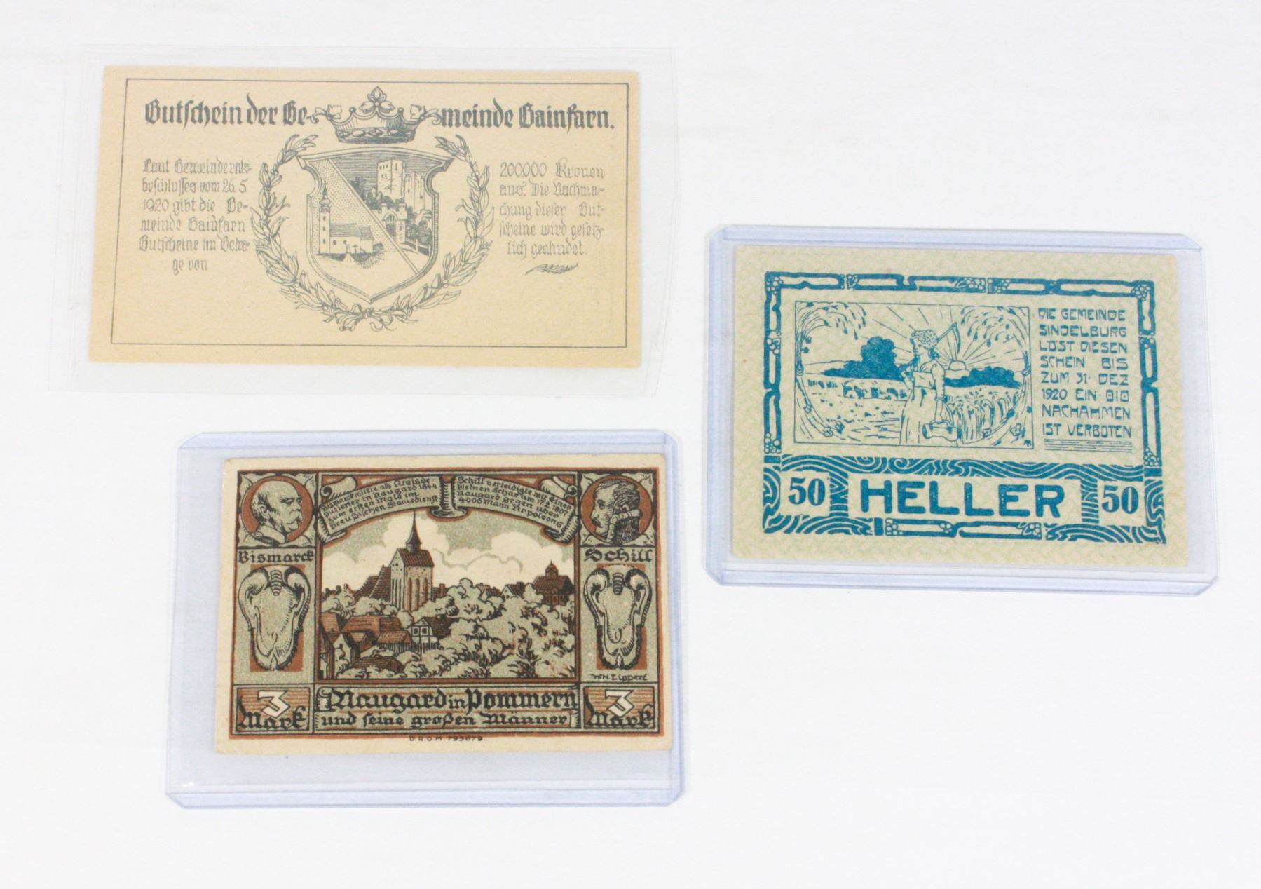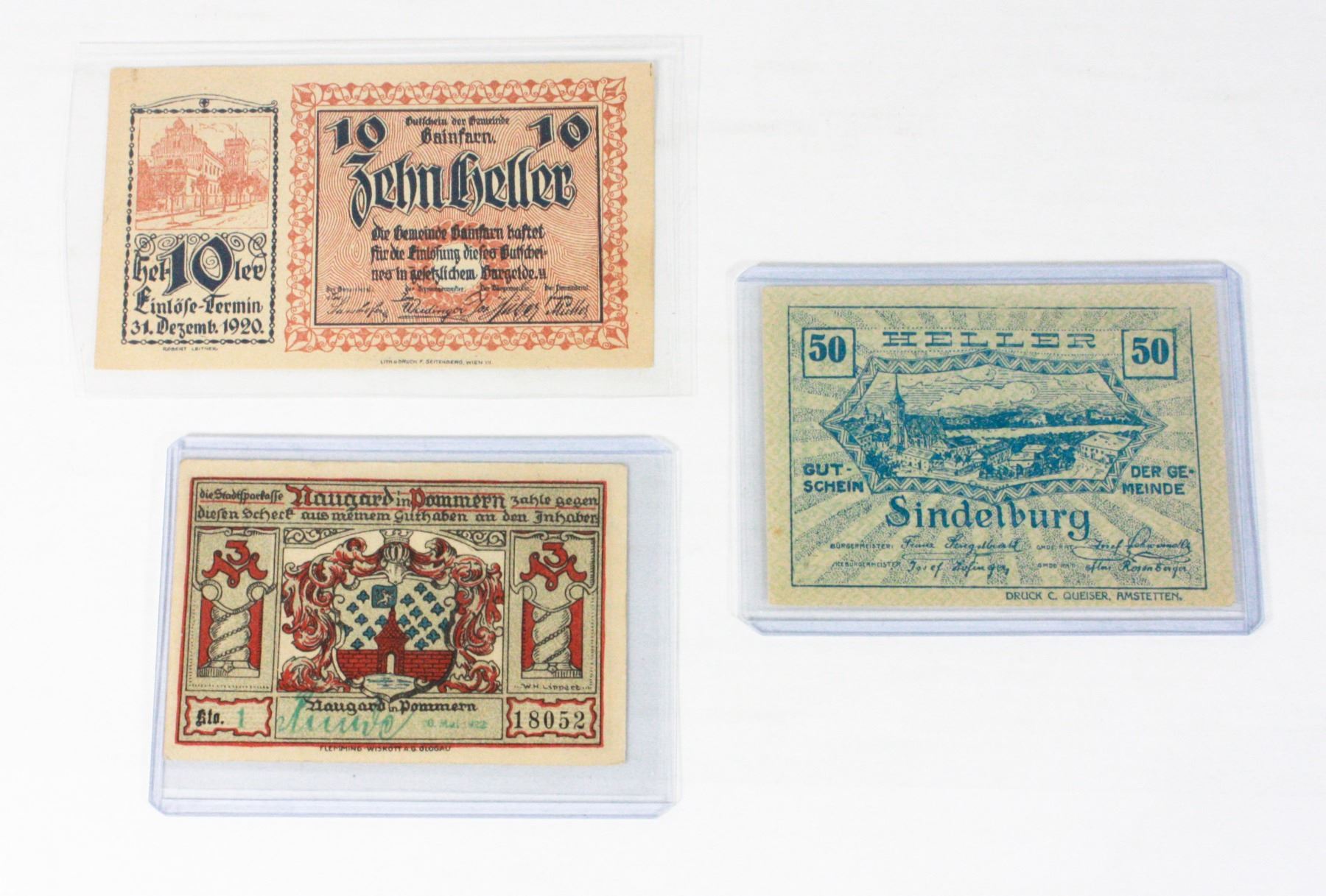 POST WW1 GERMAN 3 MARK 1922 BANKNOTE, AND POST WW1 AUSTRIAN 10 HELLER 1920 BANKNOTE