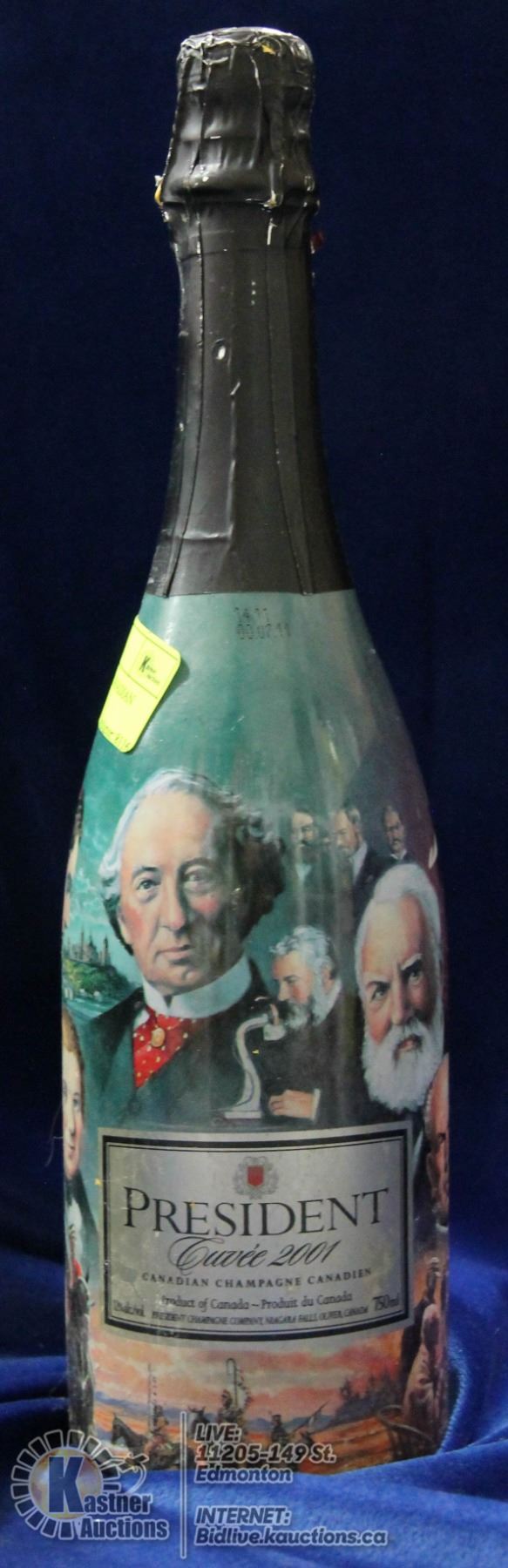 PRESIDENT CUVEE CANADIAN 2001 CHAMPAGNE12% ALCOHOL 750ML-COLLECTIBLES. *MUST BE 18 OR OLDER TO BID. NO ALCOHOL WILL BE SHIPPED. MUST PROVIDE PROOF OF AGE AT PICK UP. NO ONE MAY PICK UP ON YOUR BEHALF, NAME ON ID MUSTMATCH NAME ON INVOICE.