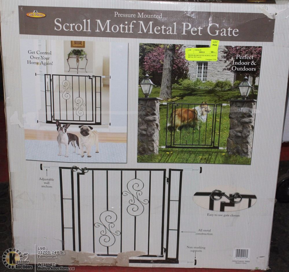 PRESSURE MOUNTED SCROLL MOTIF METAL PET GATE