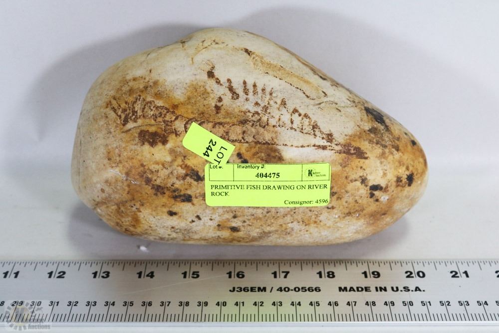 PRIMITIVE FISH DRAWING ON RIVER ROCK