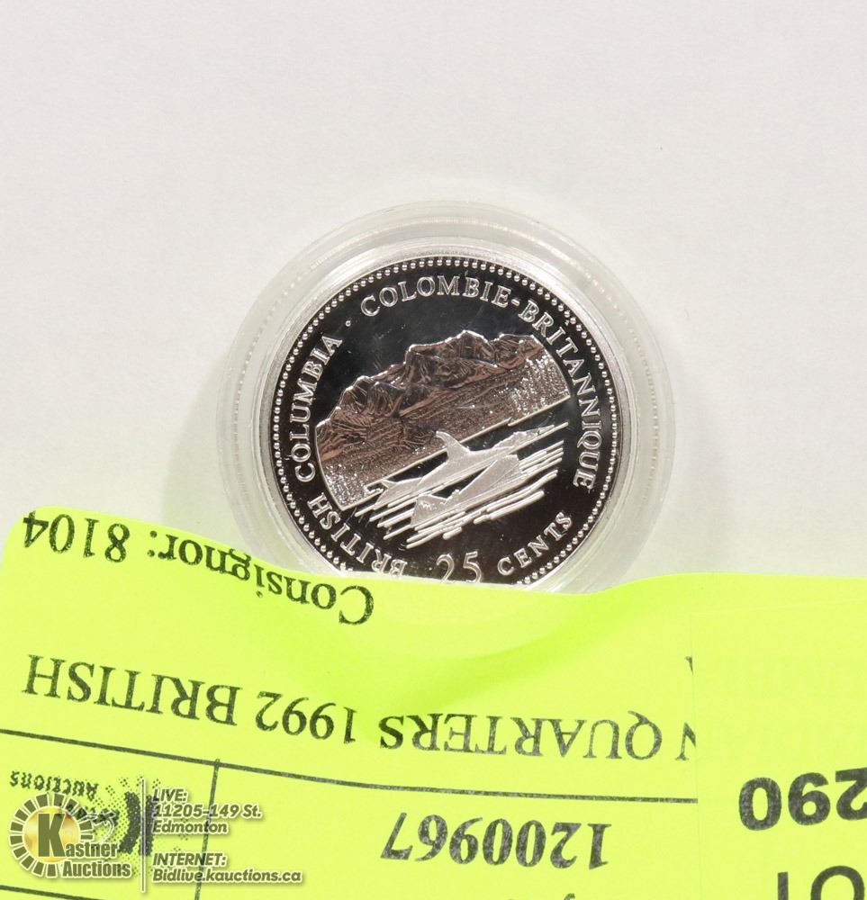PROOF CANADIAN QUARTER 1992 BRITISH COLUMBIA
