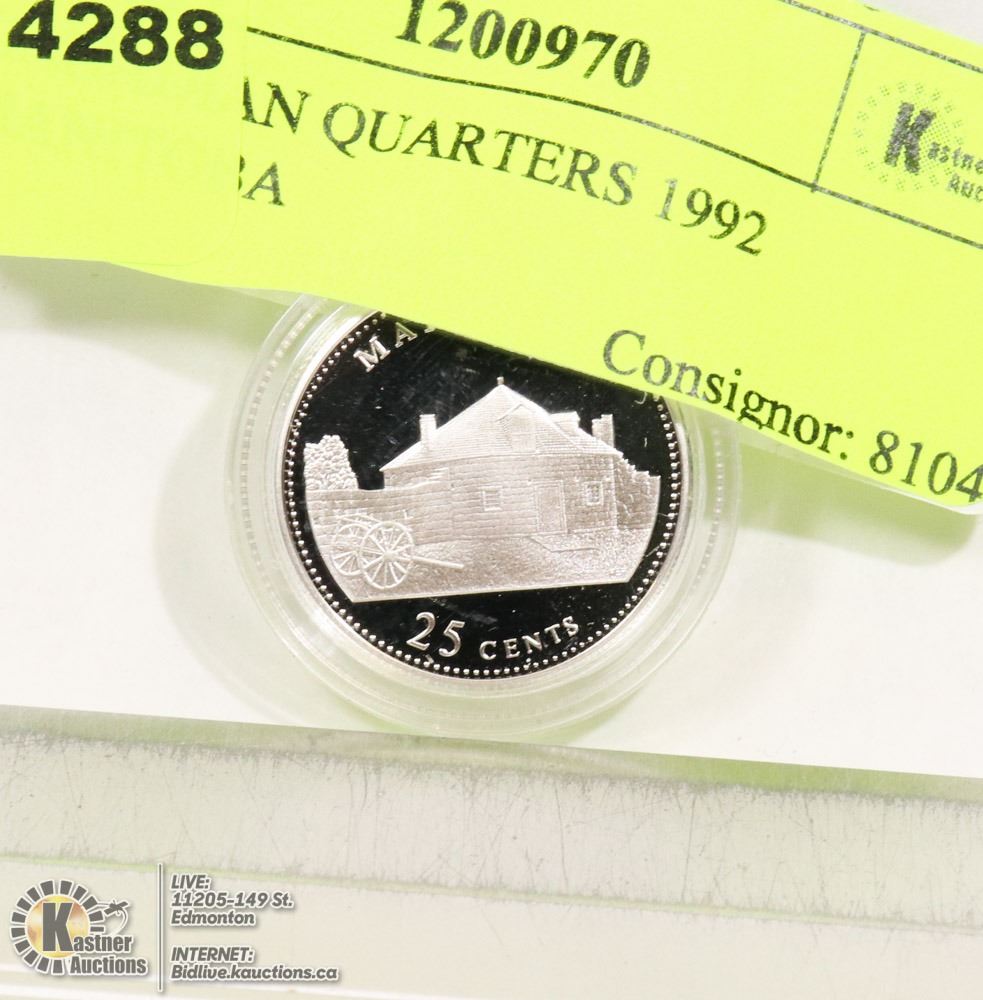 PROOF CANADIAN QUARTER 1992 MANITOBA