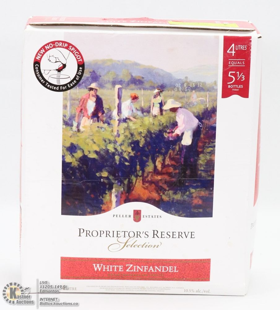 10.5%-4L. **ATTENTION ALCOHOL CANNOT BE SHIPPED THROUGH THE MAIL, MUST BE PICKED UP AND OVER 18 YEARS OF AGE!** ALCOHOL