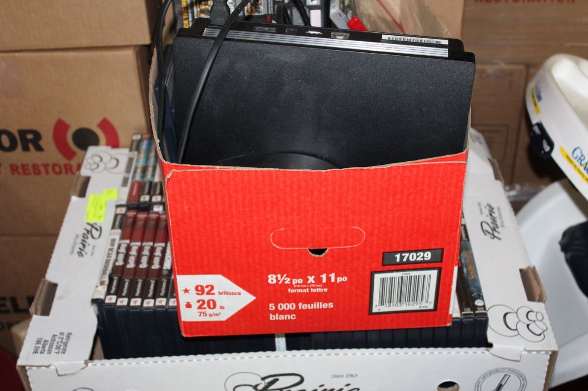PS3 W/ CONTROLLERS, HEADSET, 2 FLATS OF GAMES