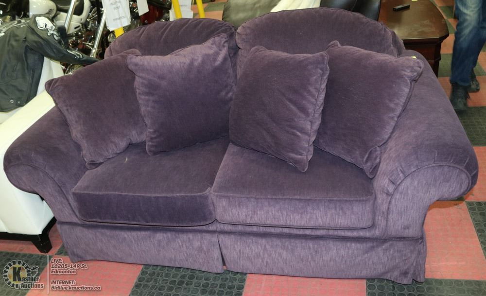 PURPLE FABRIC 68" LOVE SEAT WITH CUSHIONS