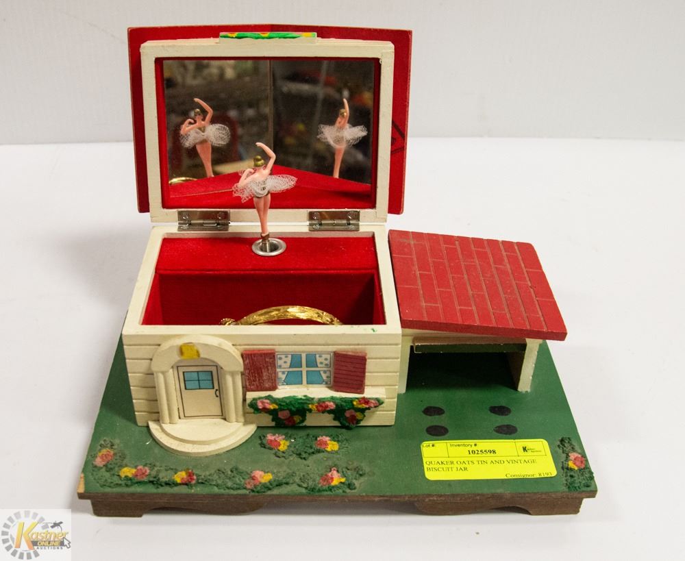 QUAKER OATS TIN AND VINTAGE BISCUIT JAR