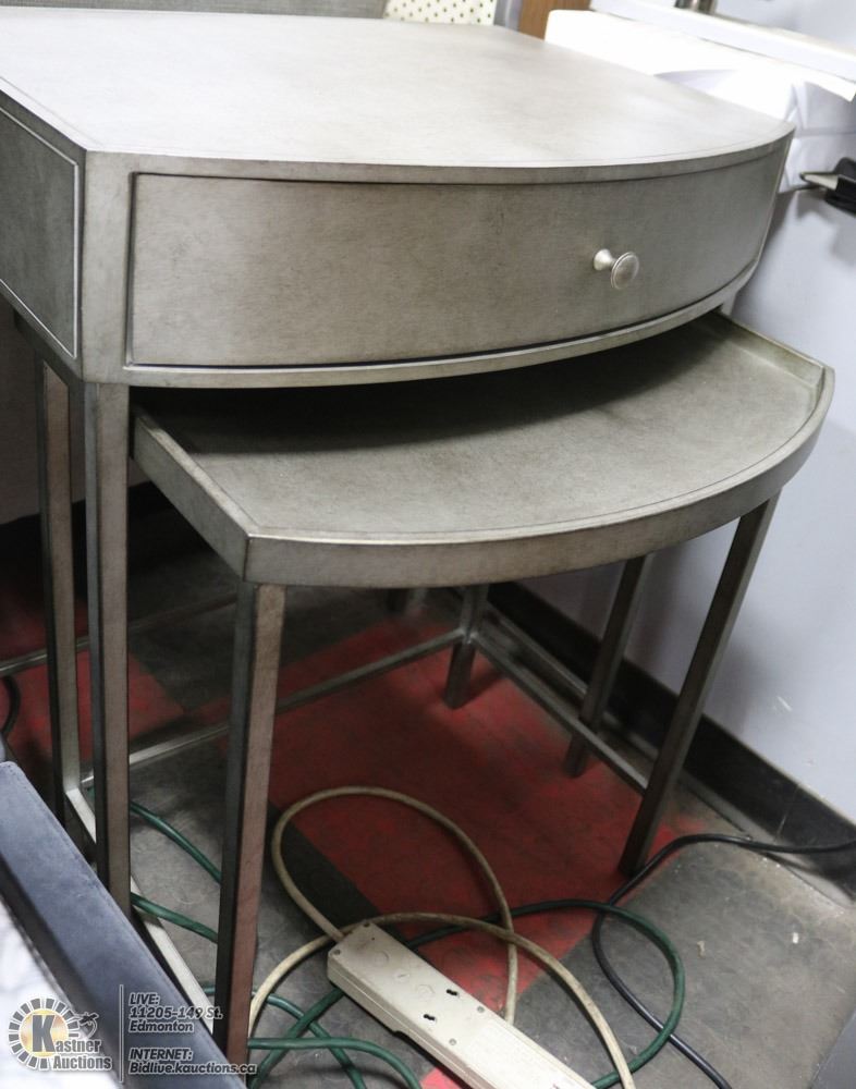 AND BLANKET SOLD WITH PAIR OF METAL NESTING END TABLES