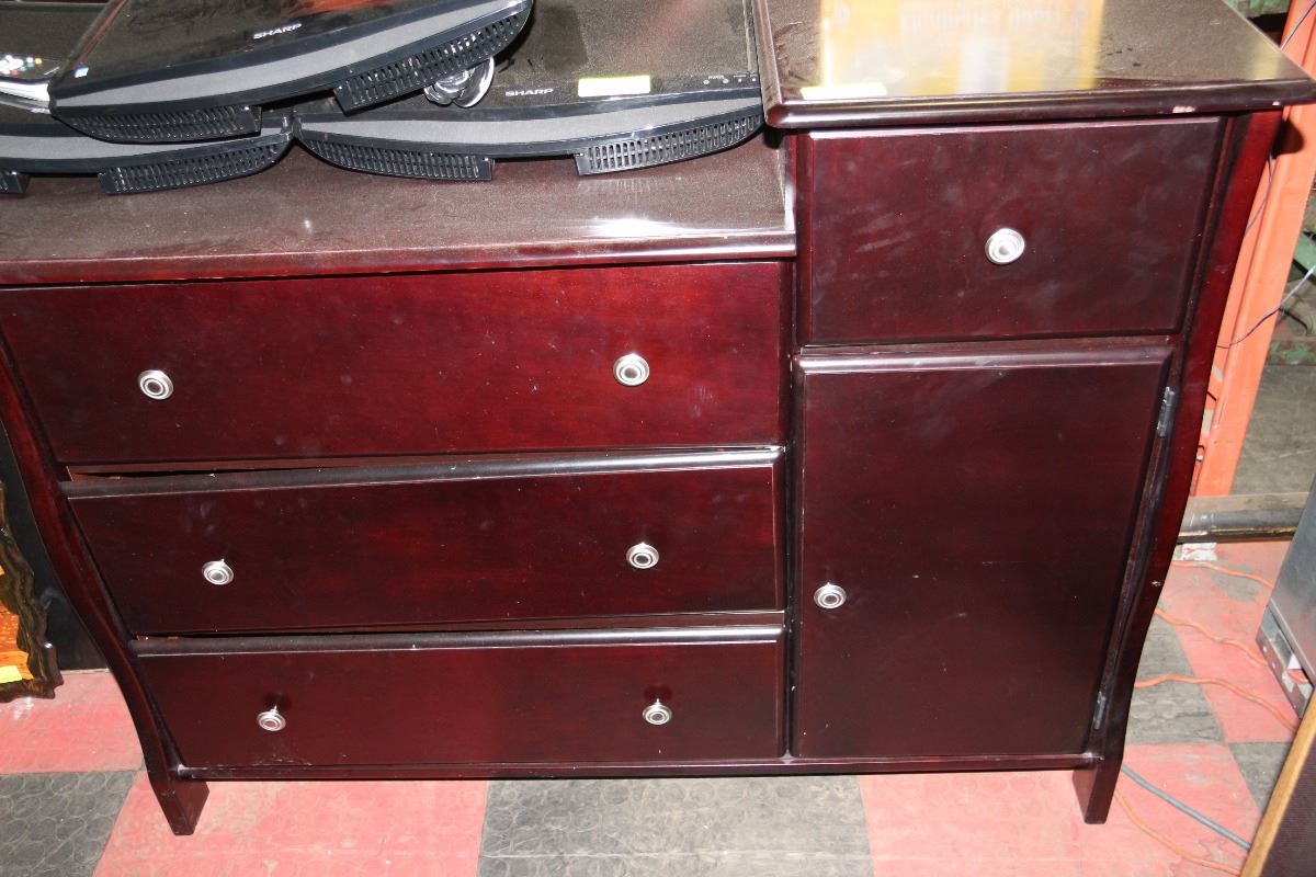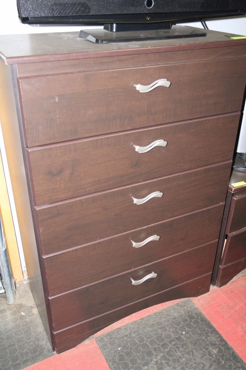 INCLUDES 5 DRAWER CHEST OF DRAWERS , NIGHTSTAND , 4 DRAWER 1 DOOR CABINET , HEADBOARD FOOTBOARD AND RAILS