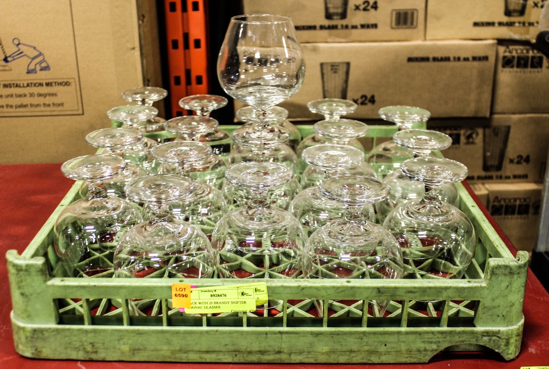 RACK WITH 20 BRANDY SNIFTER COGNAC GLASSES