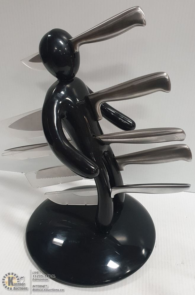 HEAVY GAUGE CHEF,BREAD,CARVER,UTILITY,PARING KNIVES IN GUARDS.SMALL PARING KNIFE IS A SUBSTITUTE BUT SIMILAR KNIFE-HOME