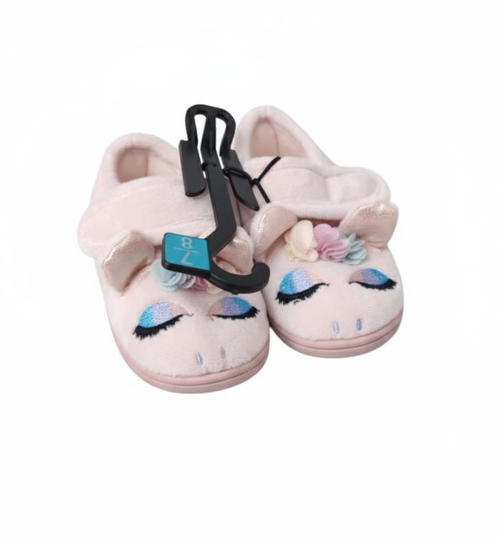 RAINBOW FLUFFY UNICORN CUPSOLE SLIPPERS (SIZE 7-8)