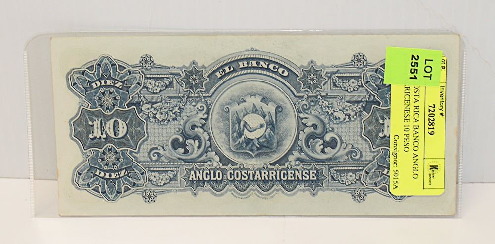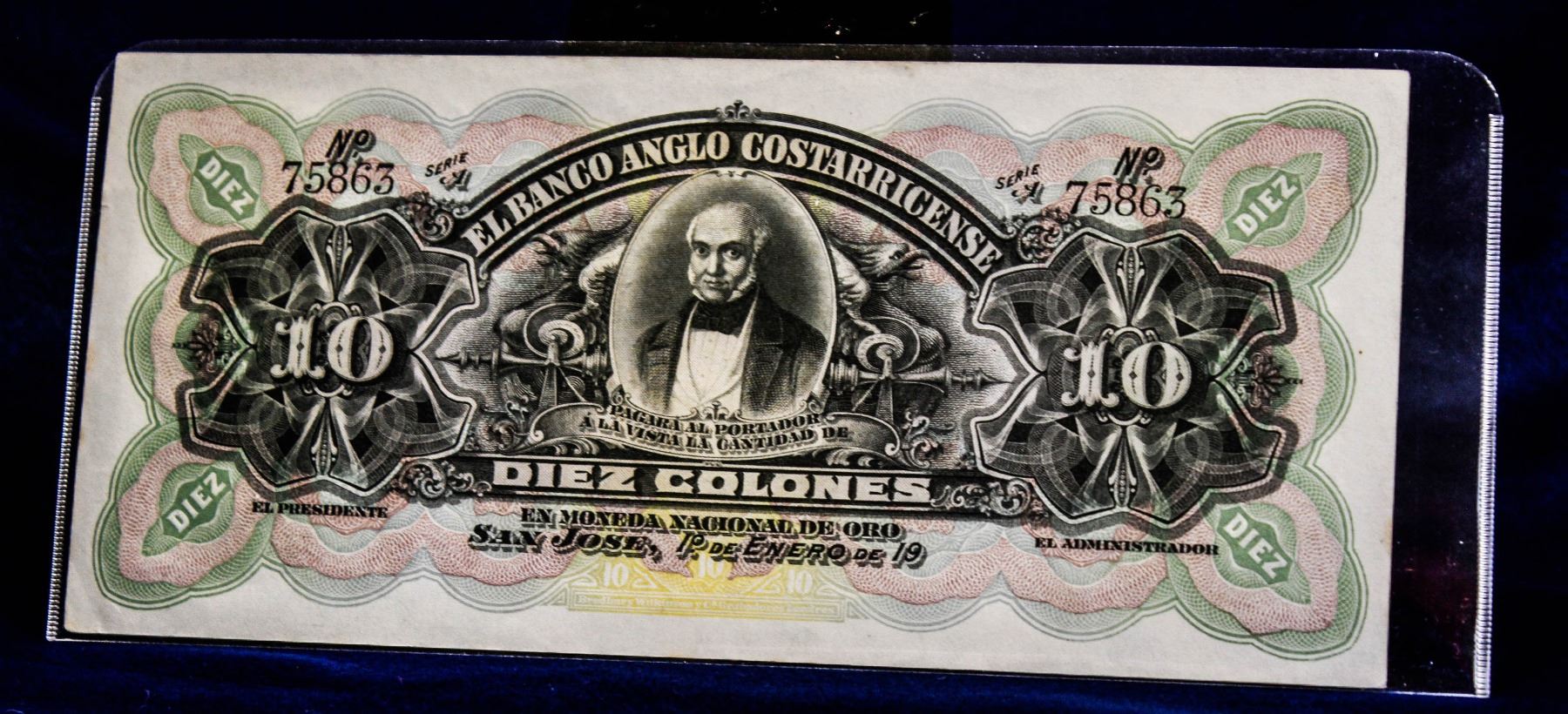 RARE COSTA RICA BANCO ANGLO COSTARRICENESE 10 PESO