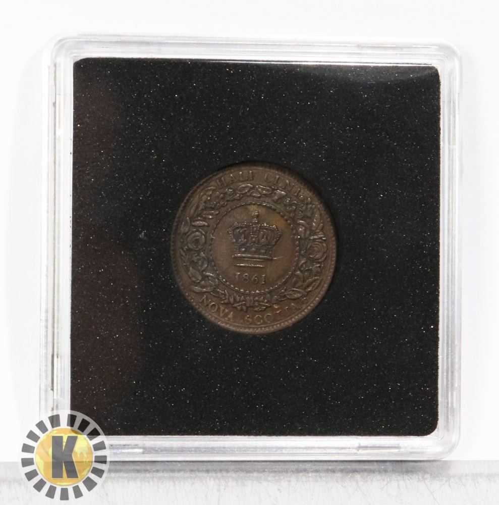 ONE OF ONLY 3 DIFFERENT HALF CENT COINS EVER ISSUED IN THE CANADIAN COLONIES. SUPERB CONDITION WITH LITTLE VISIBLE WEAR ***ITEM LOCATED IN LETHBRIDGE AB