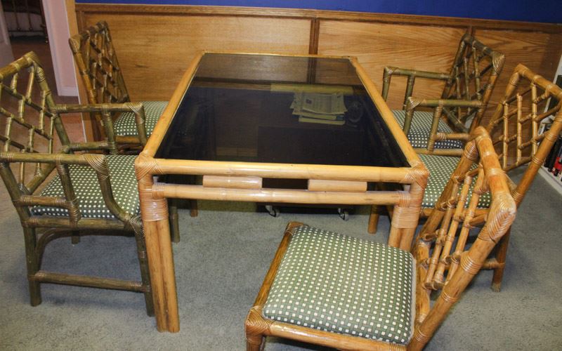 RATTAN TABLE WITH 5 CHAIRS