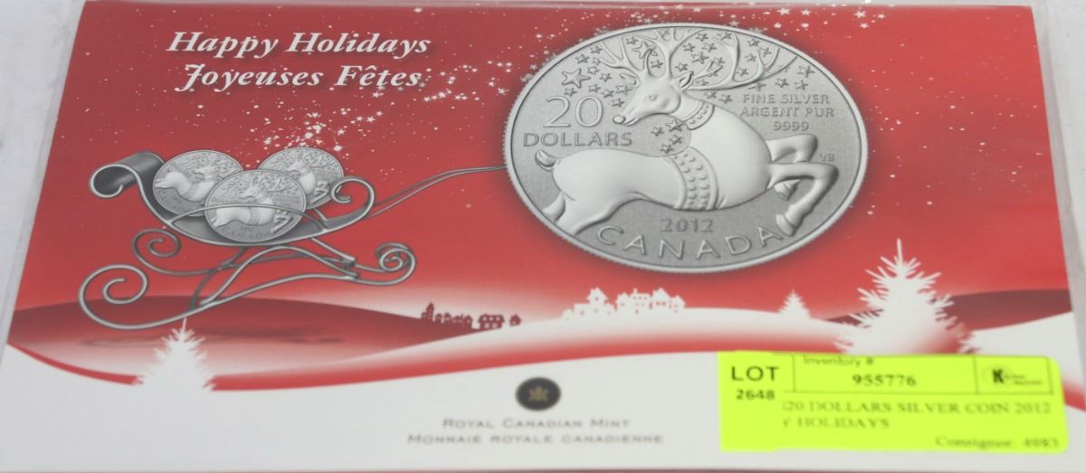 RCM $20 DOLLARS SILVER COIN 2012 HAPPY HOLIDAYS