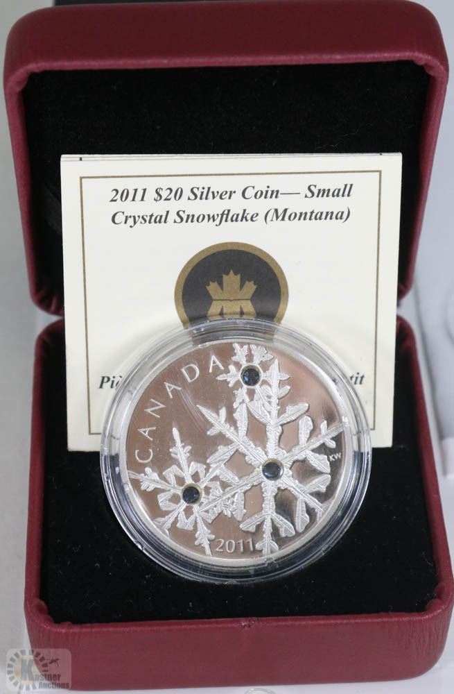 99.99% FINE SILVER COIN, CRYSTAL SNOWFLAKES (MONTANA) WITH 3 SWAROVSKI ELEMENTS CRYSTALS, LIMITED EDITION 07092/15000, WEIGHT OF SILVER IS 31.39 GRAMS.