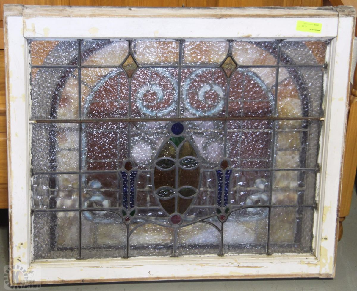 RECTANGLE WHITE WOOD FRAMED STAINED GLASS WINDOW