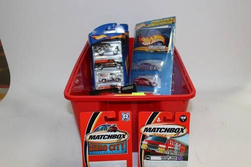 RED BIN W/ NEW HOTWHEELS & COLLECTIBLES