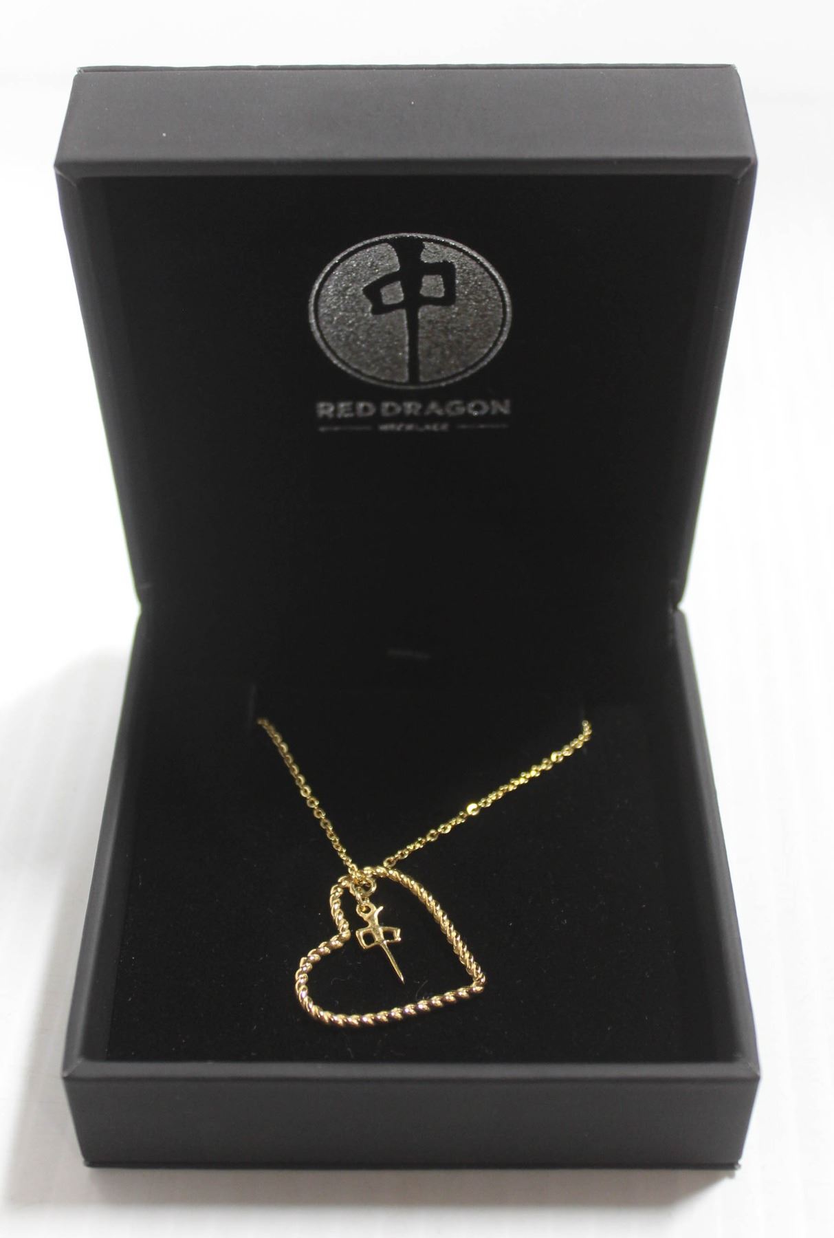 RED DRAGON WOMENS HEART LOGO GOLD TONED NECKLACE