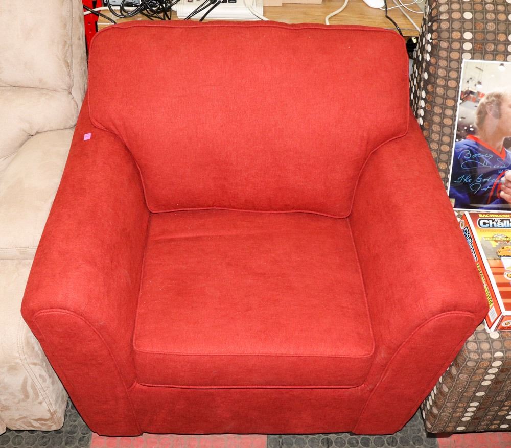 RED FABRIC ARM CHAIR. FURNITURE