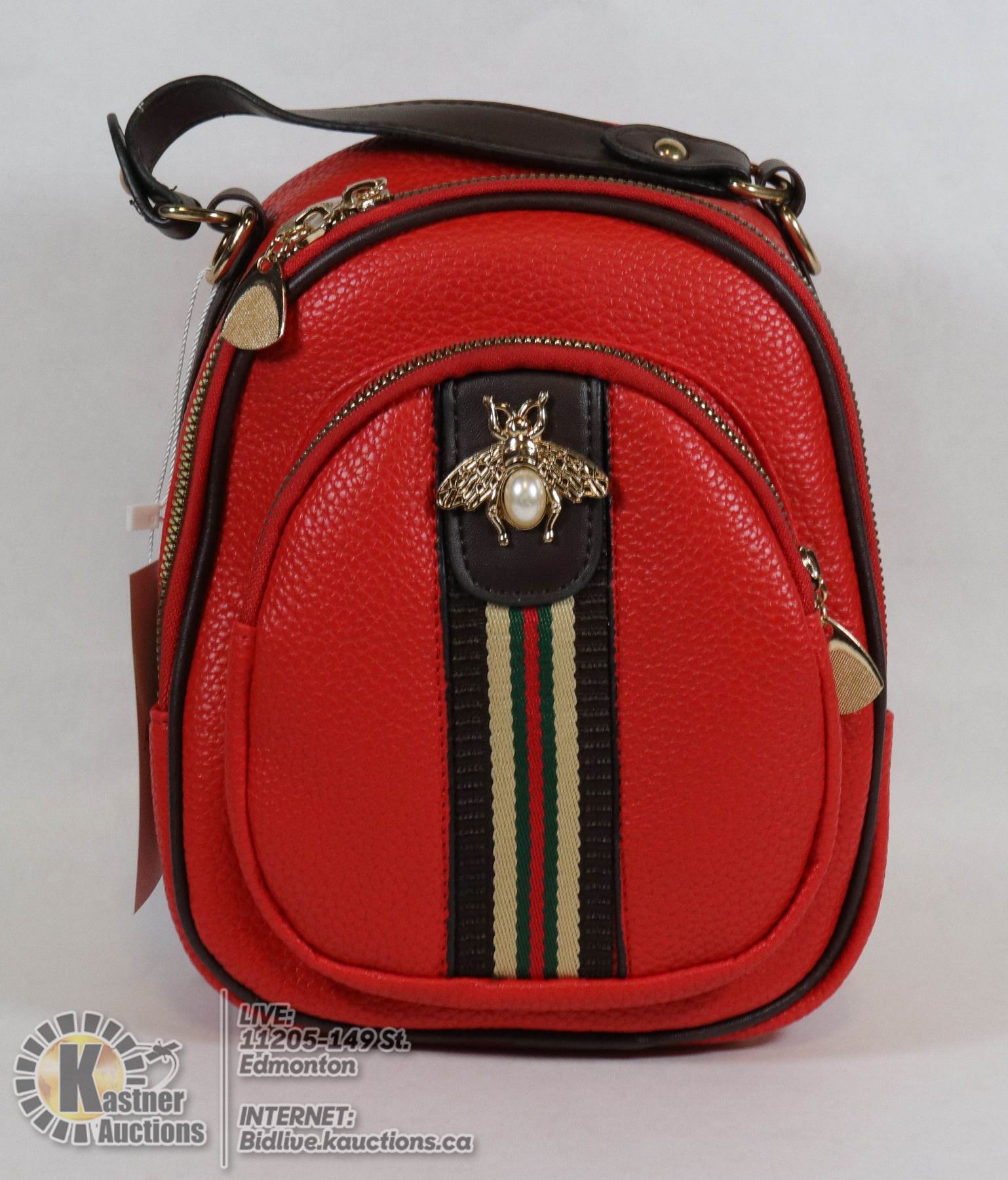RED LEATHER BACKPACK STYLE PURSE