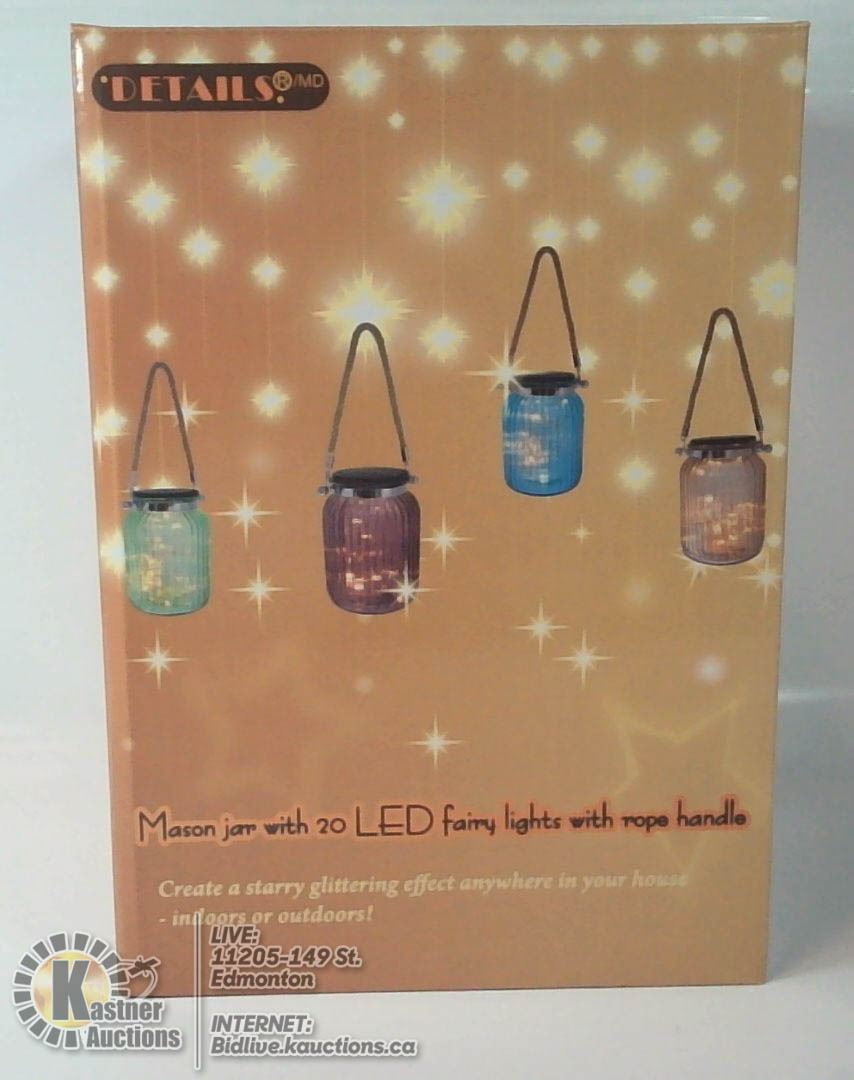RED MASON JAR WITH FAIRY LIGHTS AND ROPE HANDLE