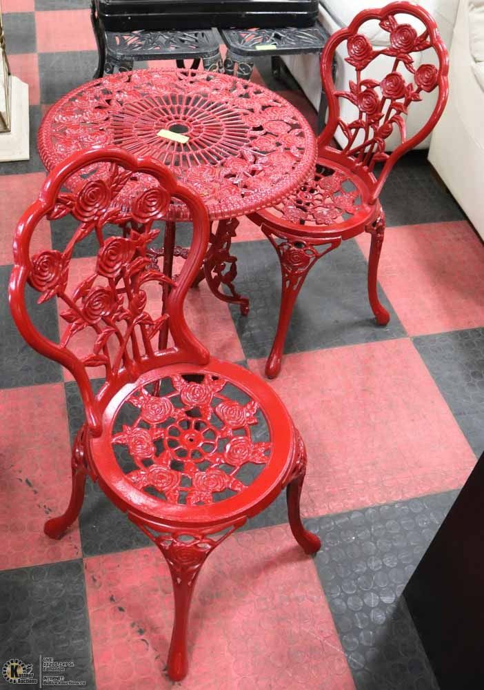 RED METAL 2 SEAT BISTRO SET, FLORAL PATTERN