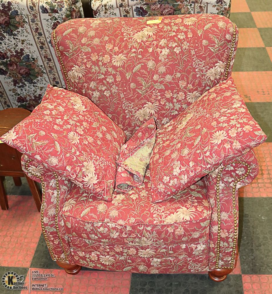 RED NAILHEAD FABRIC ARM CHAIR