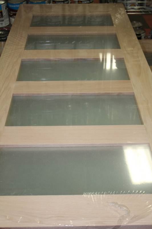 RED OAK SOLID DOOR WITH FROSTED GLASS INSERTS