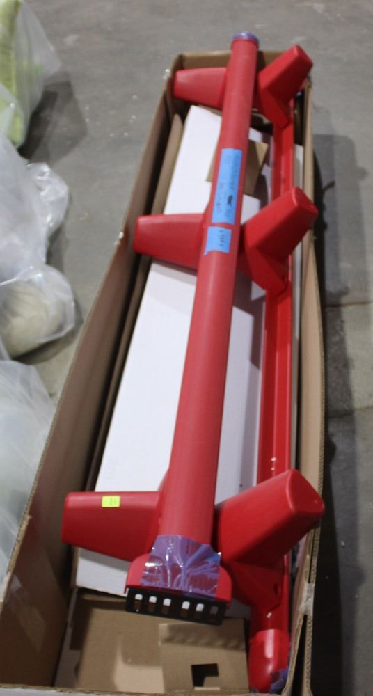 RED PLASTIC & METAL QUEEN BED FRAME
