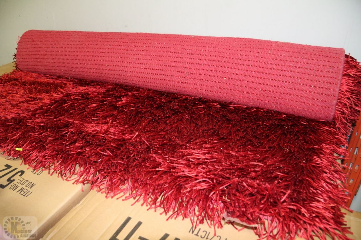 RED SHAG STYLE AREA RUG CARPET