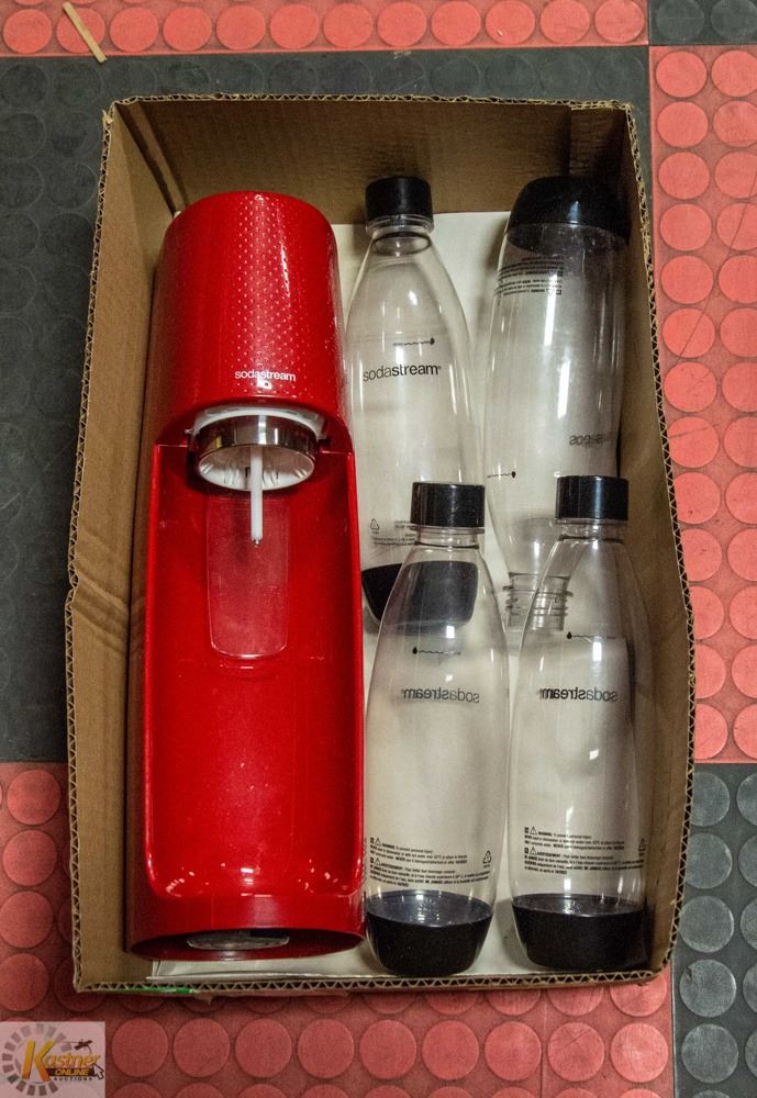 RED SODASTREAM SYSTEM WITH 4 BOTTLES