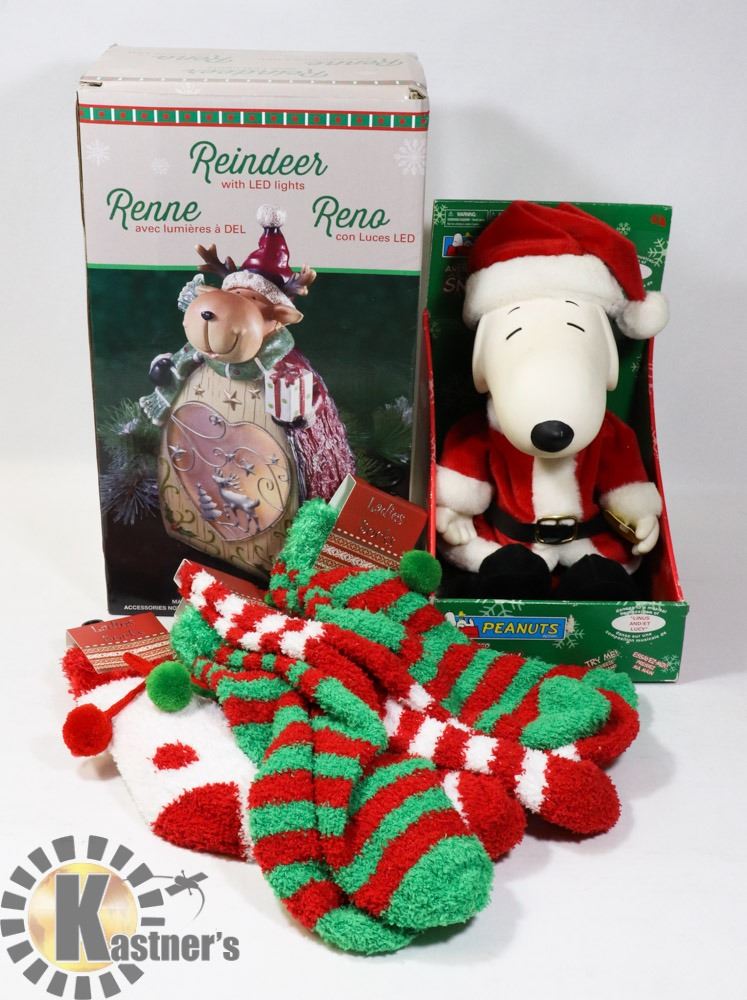 .CHRISTMAS DECORATION, TOYS AND CLOTHING. 2AA BATTERIES REQUIRED (NOT INCLUDED) FOR THE LIGHT-UP REINDEER/