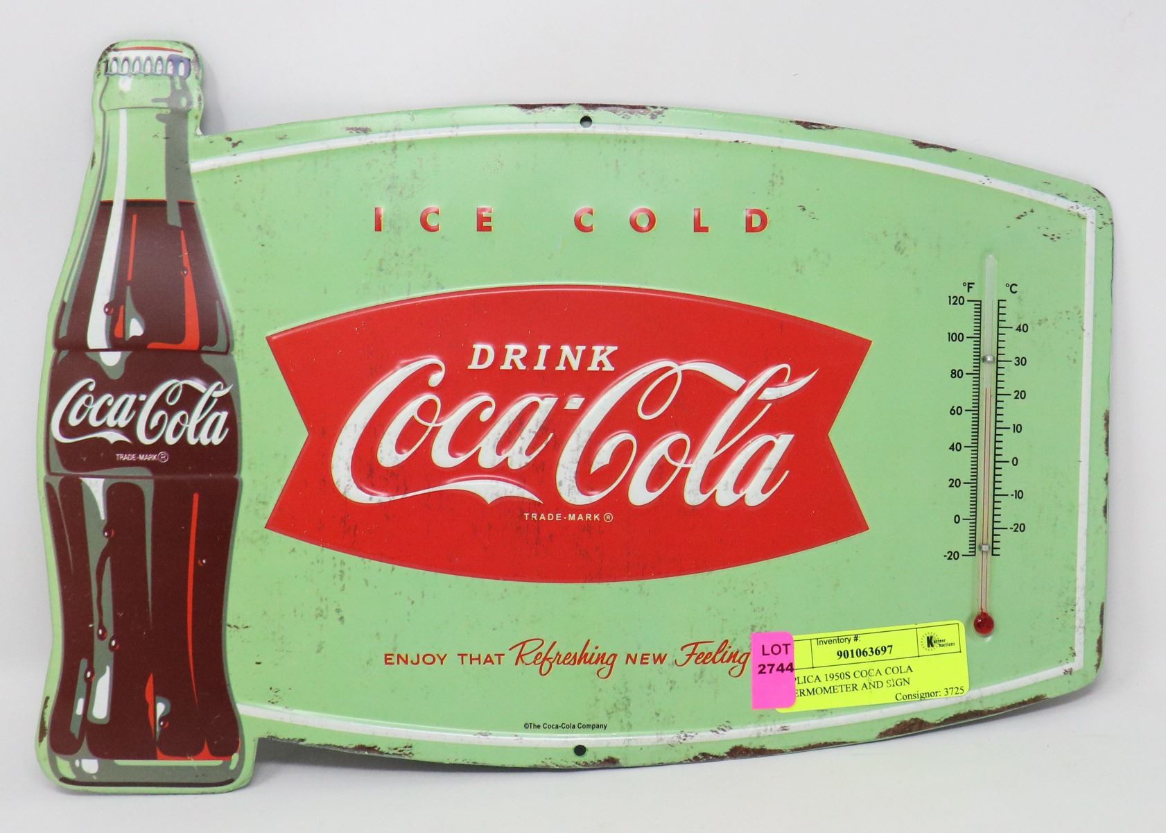 REPLICA 1950S COCA COLA THERMOMETER AND SIGN