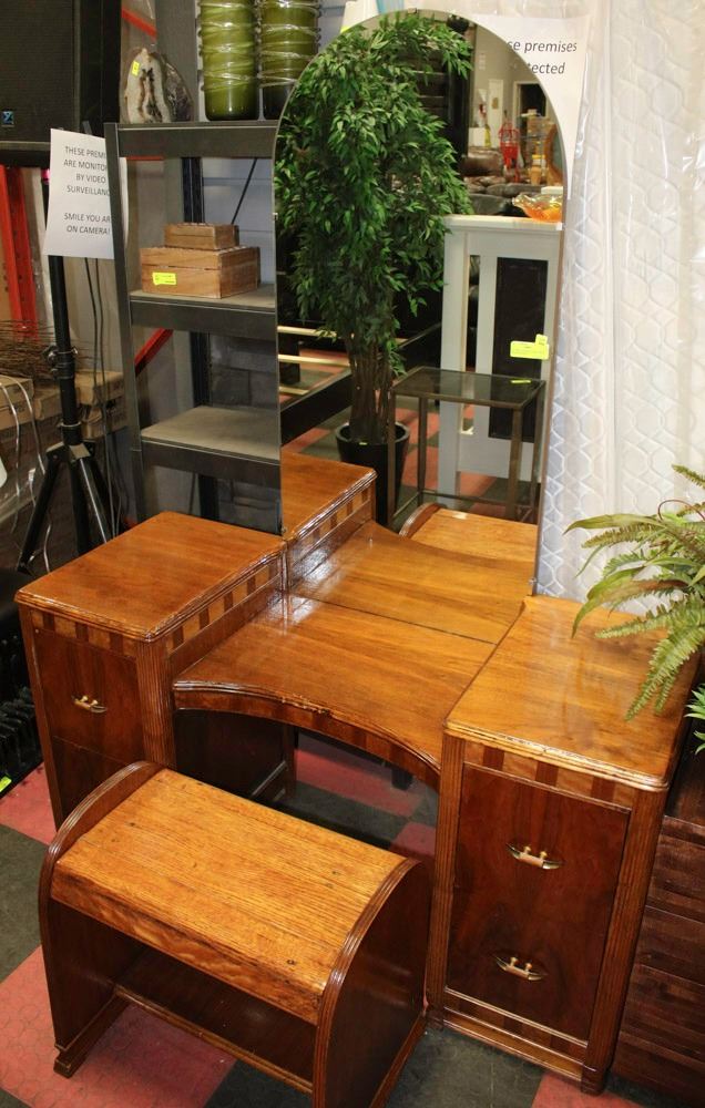 RESTORED ANTIQUE VANITY WITH MIRROR & BENCH